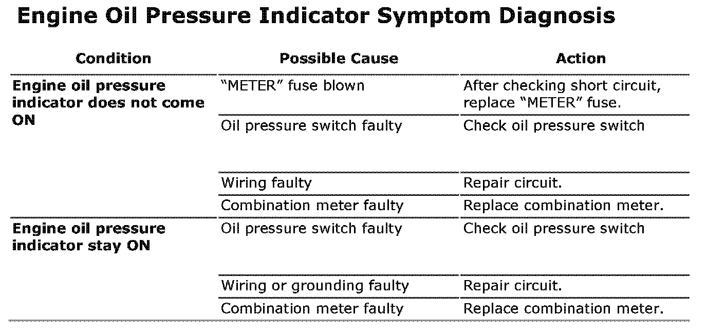 Engine Oil Pressure Indicator Symptom Diagnosis: