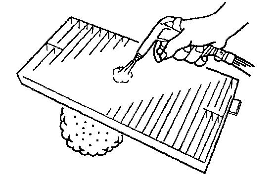 3. Blow off dust by compressed air from air outlet side of element.