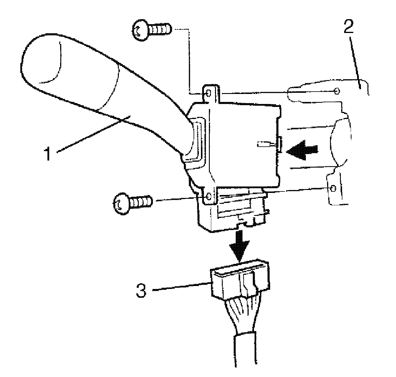 4. Remove lighting switch (1) from combination switch assembly (2) and disconnect its coupler (3).