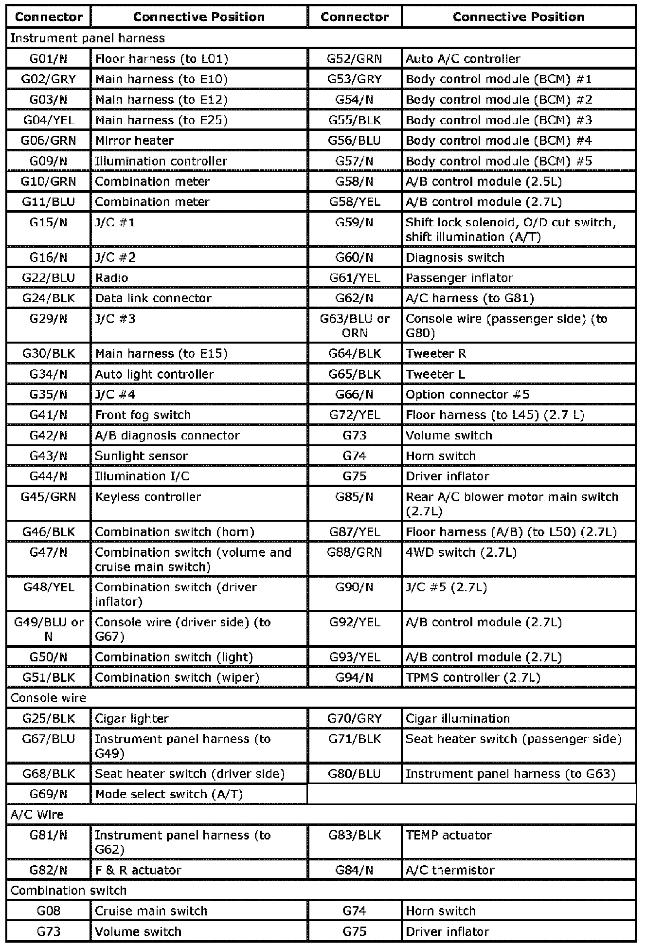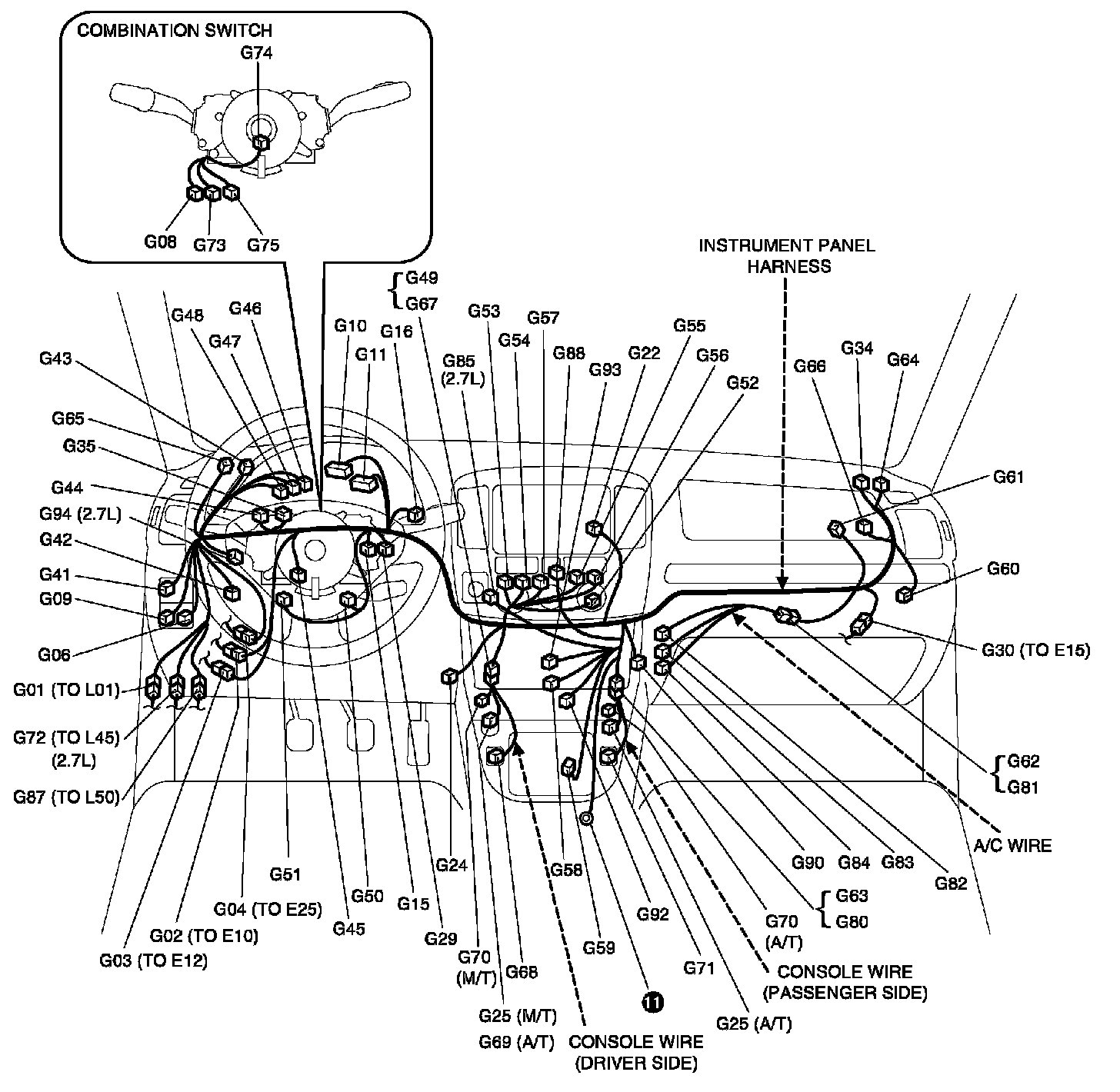 G:Instrument Panel Harness Console Wire A/C wire and Combination Switch Index: