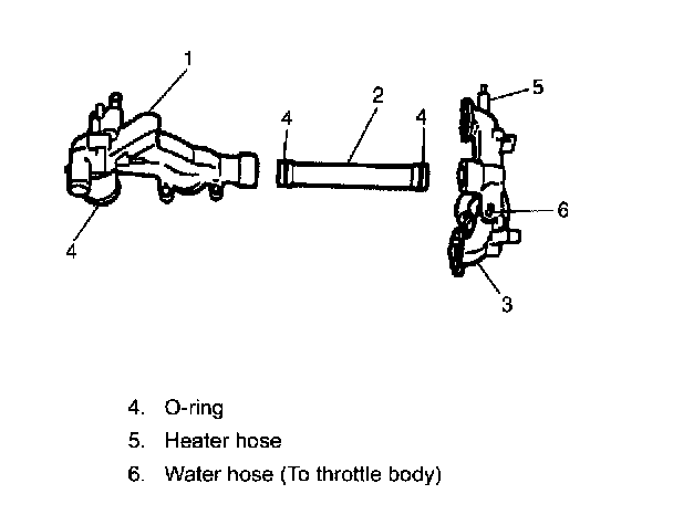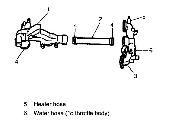 6. Disconnect heater inlet hose (5) from water outlet cap (3).