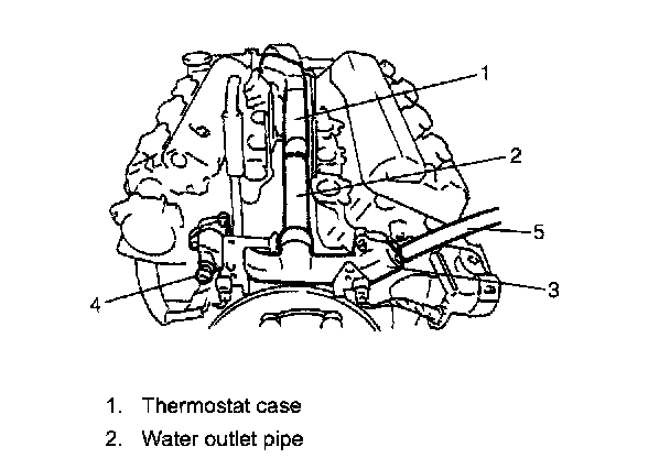 8. Remove water outlet pipe (2) from thermostat case (1).