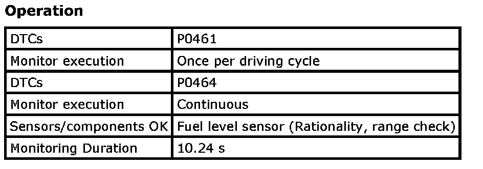 Refer to DTC P0463: Fuel Level Sensor Circuit High Input:H25 Engine.