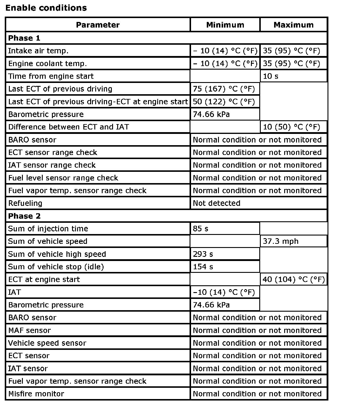 Fuel Vapor Temp. Sensor Rationality Monitor