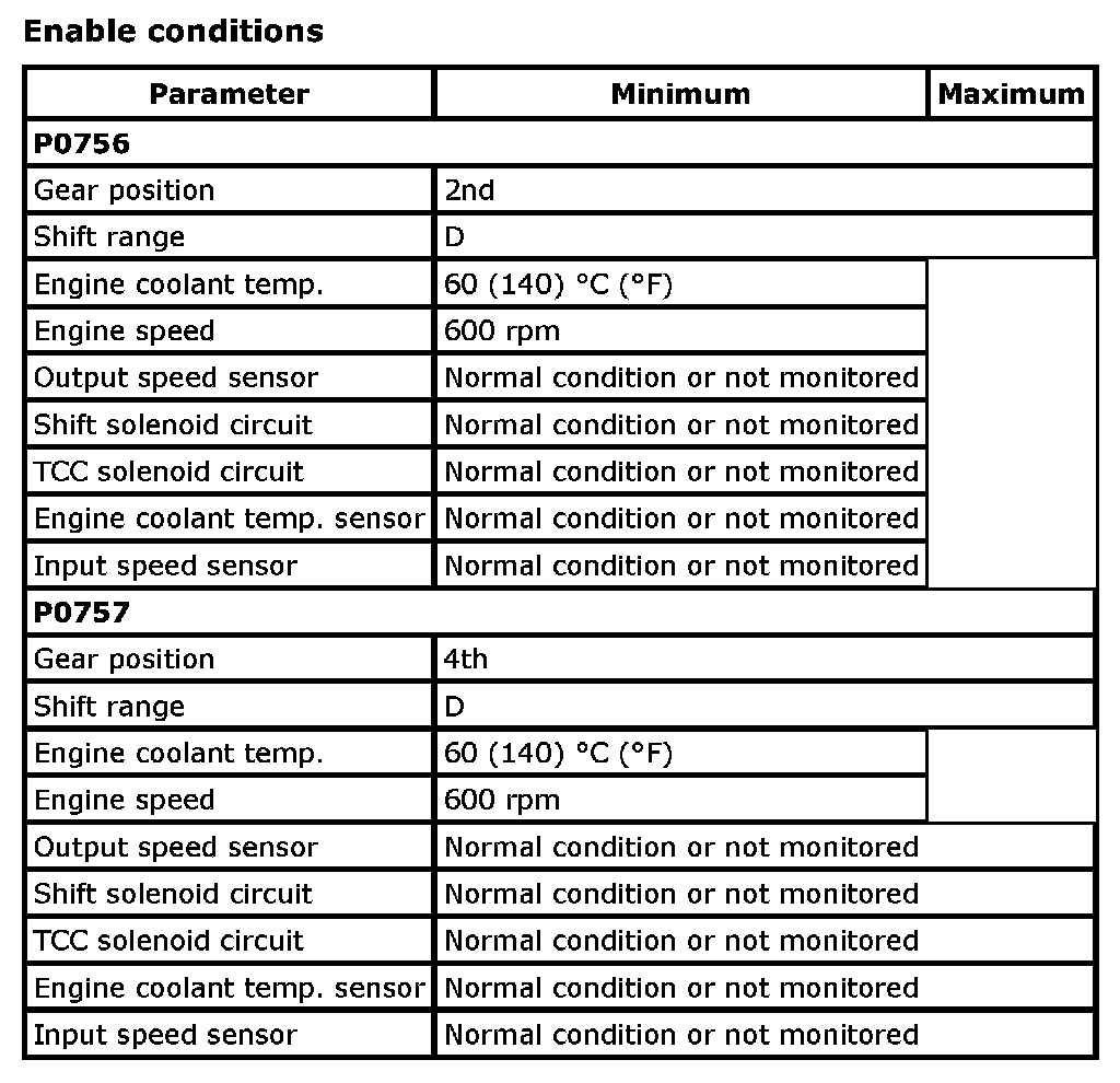Refer to DTC P0751 / P0752 / P0756 / P0757: Shift Solenoid Performance or Stuck OFF / Stuck ON:4 A/T.