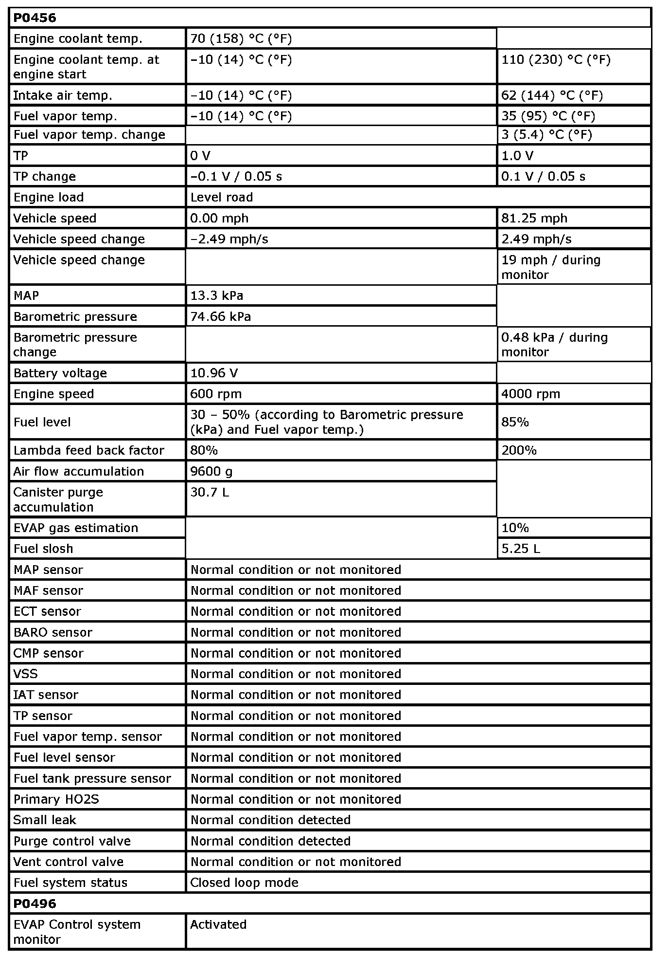 P0442, P0455