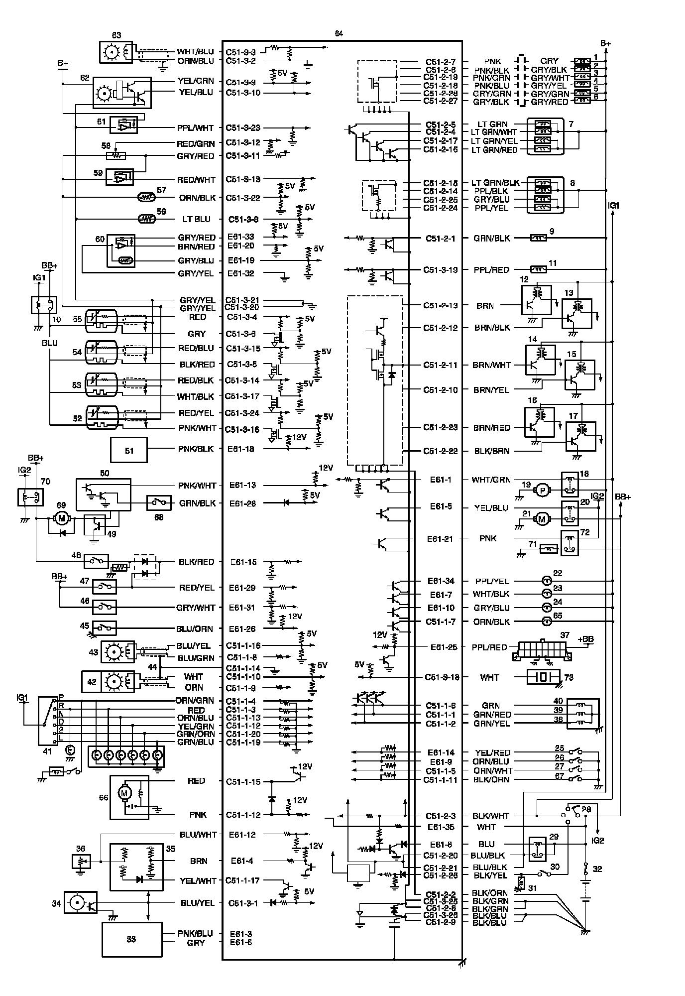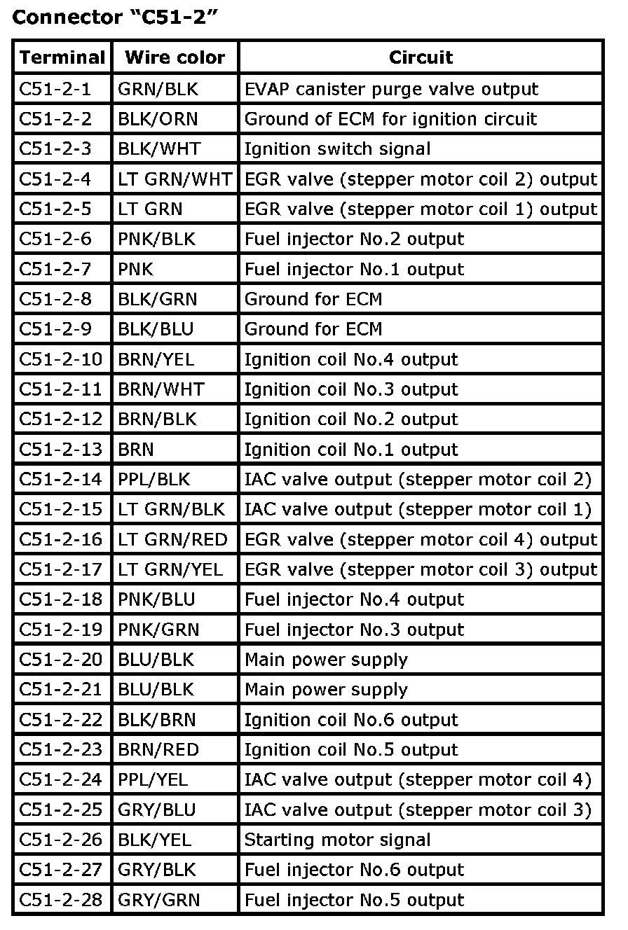 Terminal Arrangement Of ECM (PCM) Connector (Viewed From Harness Side) & Electronic Control System Wiring Circuit Diagram Components: