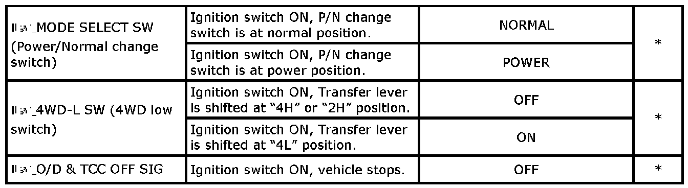 - For asterisk (*) marked item in Other column, item can be read only SUZUKI scan tool.