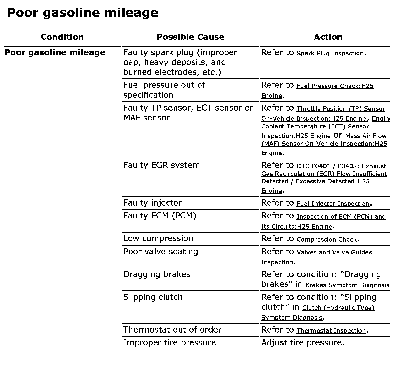 Poor Gasoline Mileage: