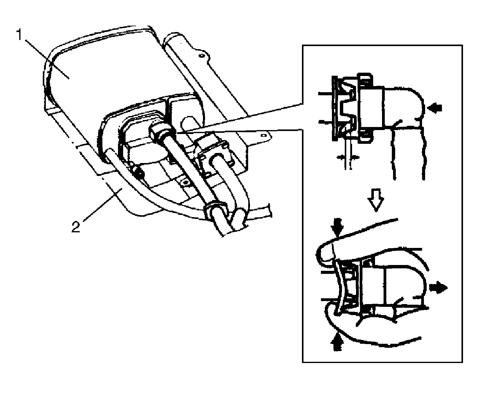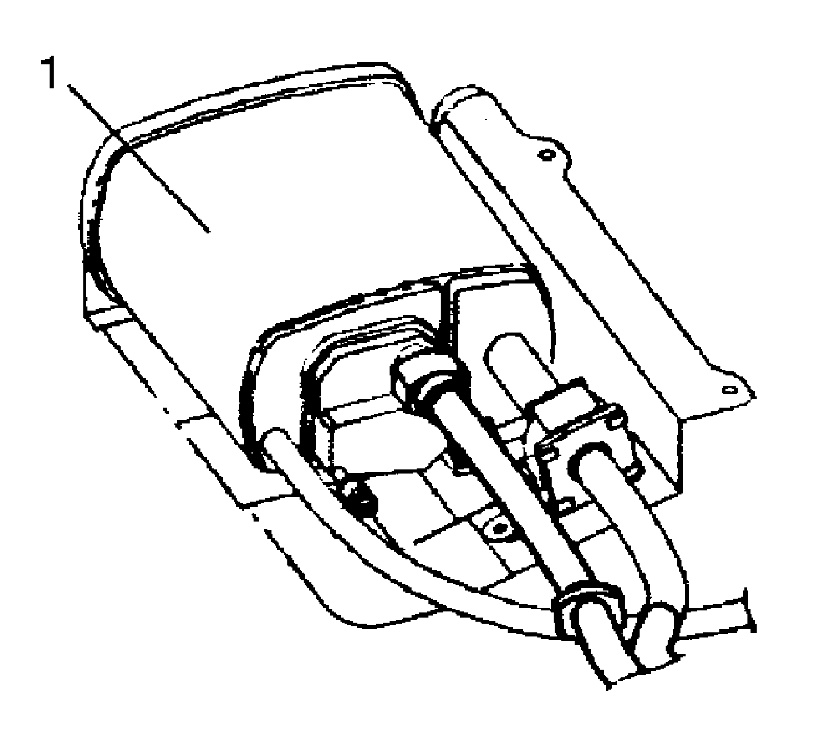 3. Connect tank hose, purge hose and refuel vapor control valve hose to EVAP canister (1), and then clamp them securely.