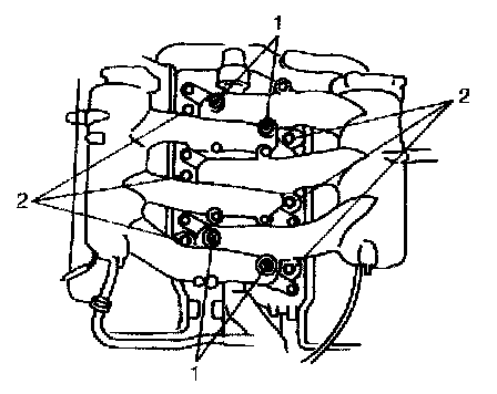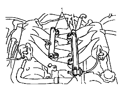 7. Remove delivery pipes (1) (right and left) from intake manifold.