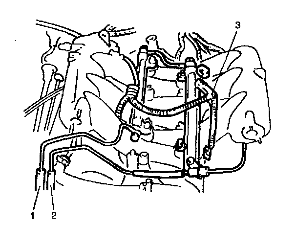 3. Disconnect fuel feed hose (1) and fuel return hose (2).