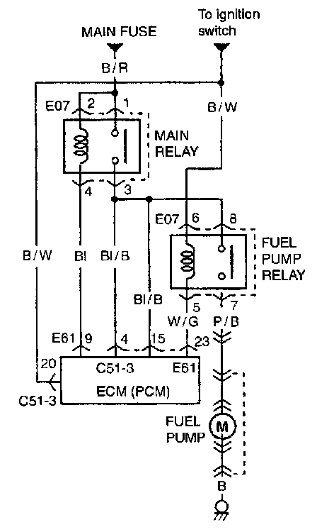 ECM (PCM) controls ON/OFF operation of the fuel pump by turning it ON via the fuel pump relay under one of the following conditions.