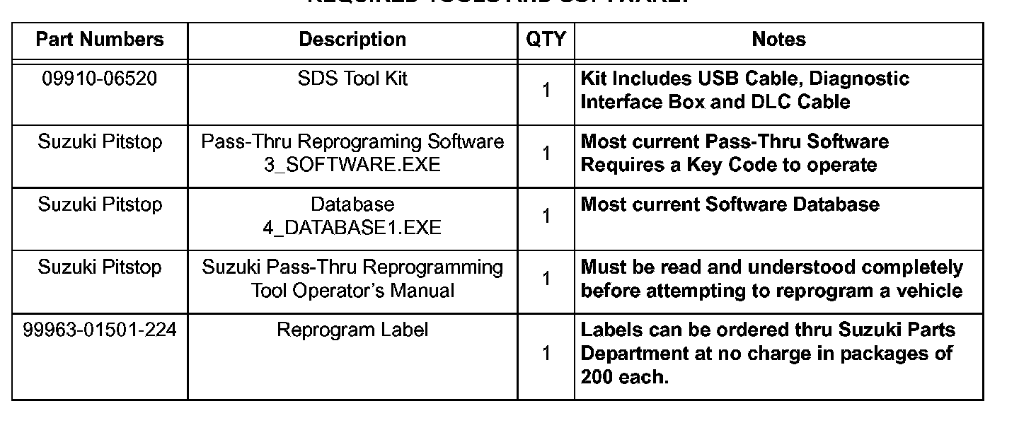 2. Download and review the Suzuki Pass-Thru Reprogramming Tool Operator's Manual. This must be read and understood COMPLETELY before attempting to reprogram the ECM.