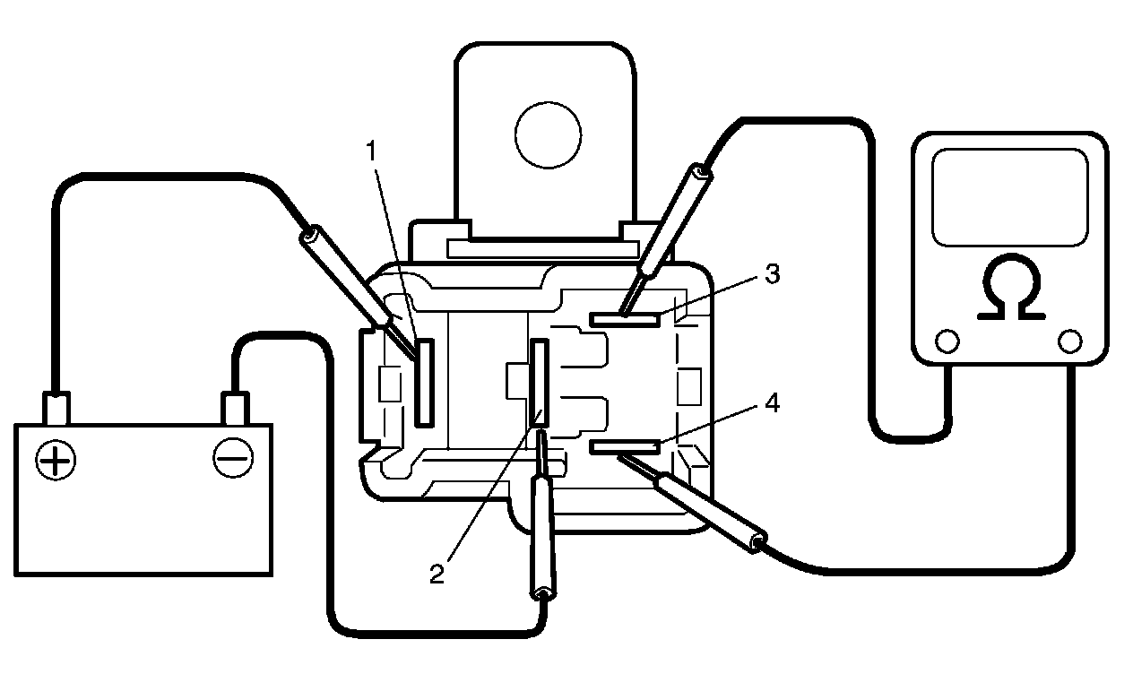 1. Connect battery positive (+) terminal to terminal (1) of relay.