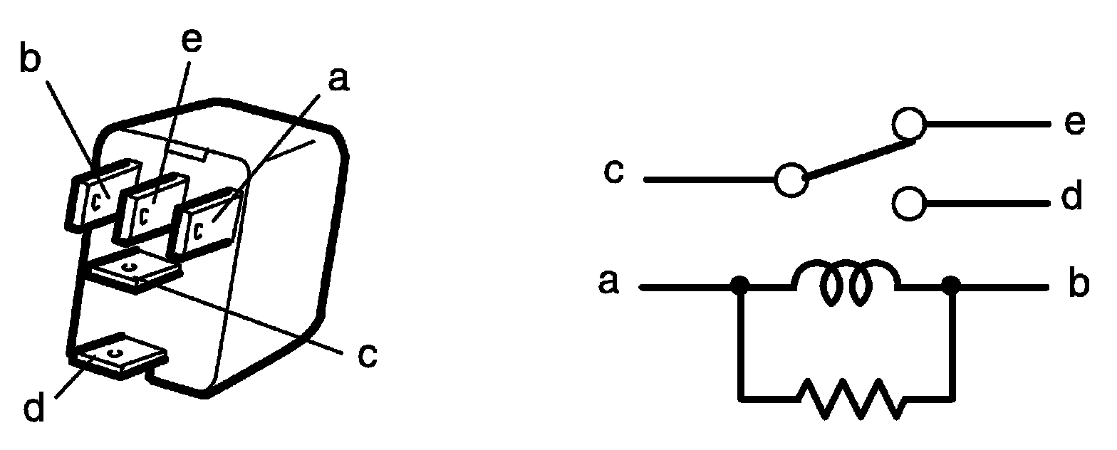 5. Check that there is continuity between terminal "c" and "e". If there is no continuity, replace relay.
