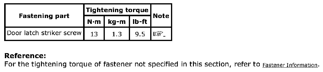 Tightening Torque Specifications: