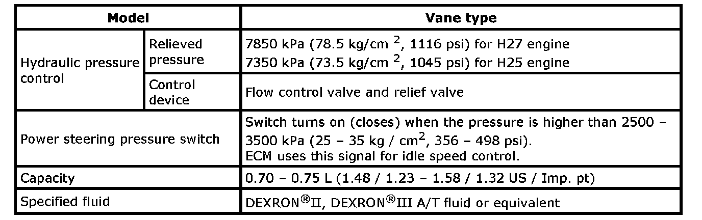 (P/S) pump specifications