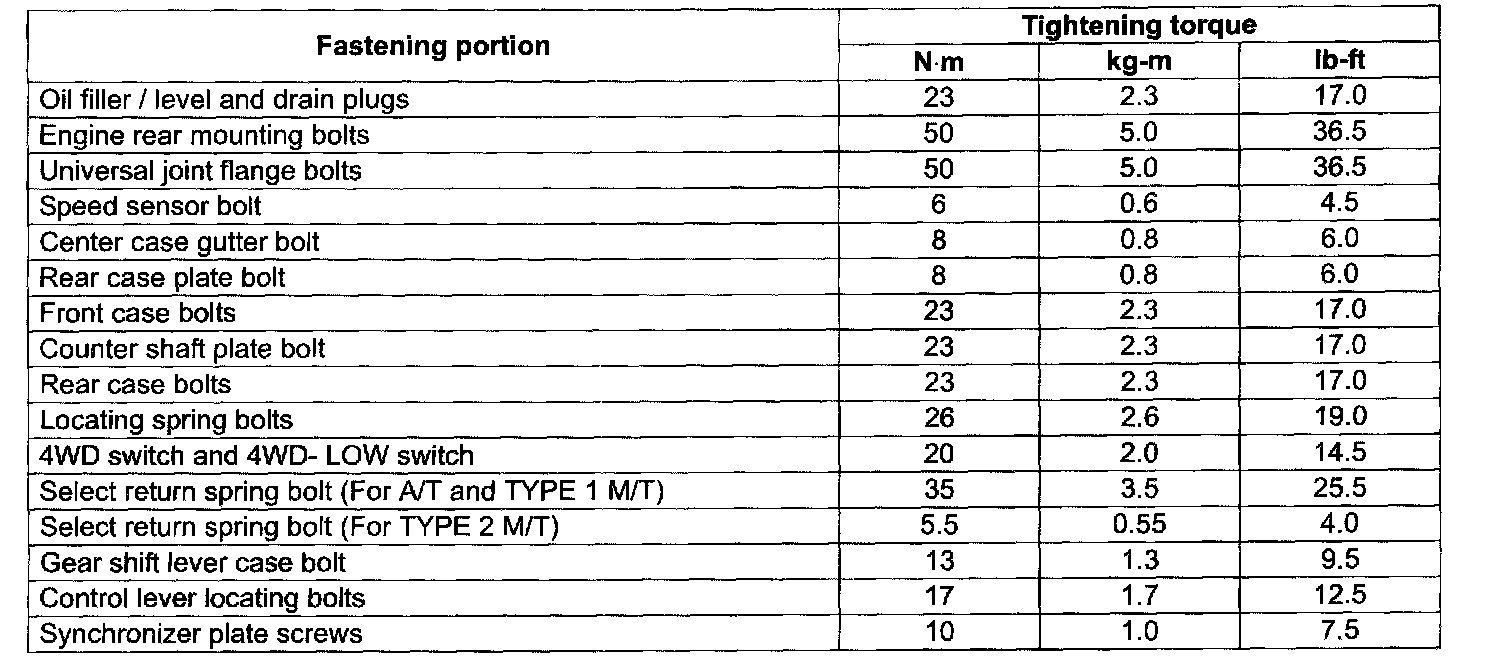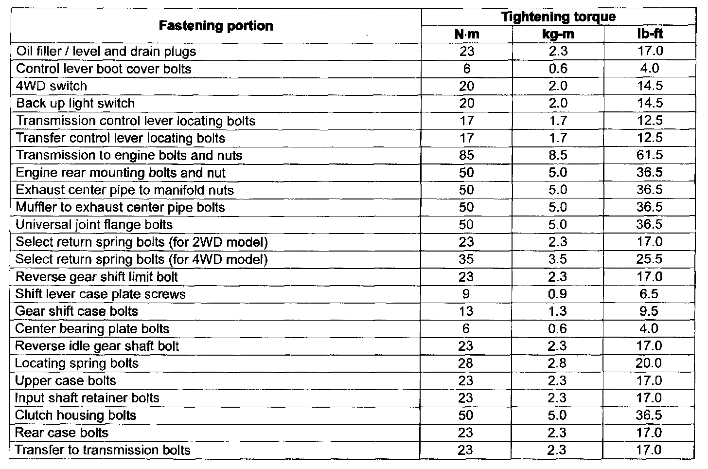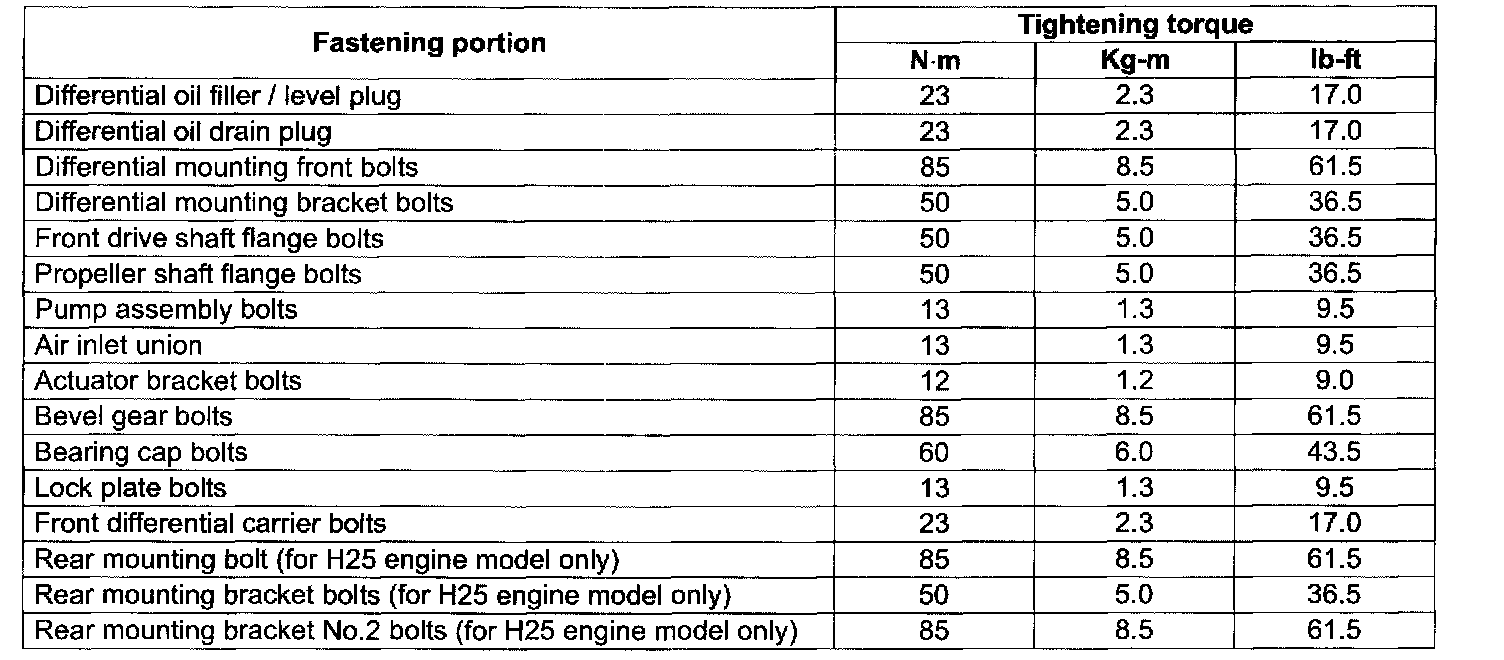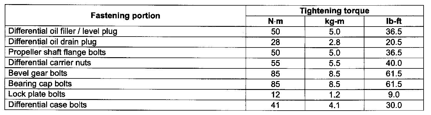 FRONT DRIVE SHAFTTightening Torque Specifications