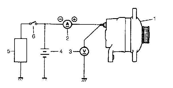 5. Connect switch (6), load (5), battery (4), voltmeter (3) and ammeter (2) to generator (1) as shown in figure.