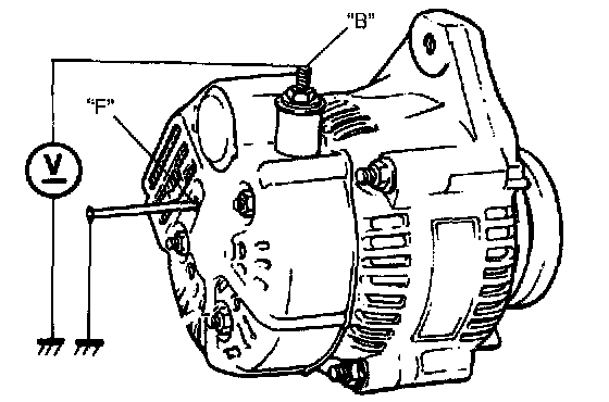 i. Ground "F" terminal and start engine, then measure voltage at "B" terminal as shown in the figure.