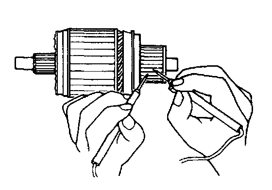 Check for continuity between segments. If there is no continuity at any test point, there is an open circuit and armature must be replaced.