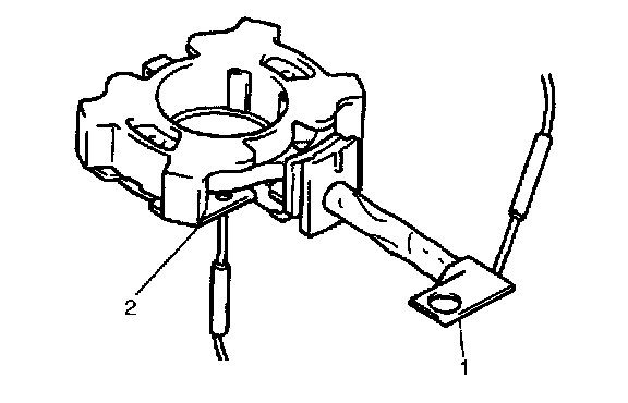 - Check for continuity across brush positive terminal (1) and grounded brush holder (2). If continuity exists, brush holder is grounded due to defective insulation and should be replaced.