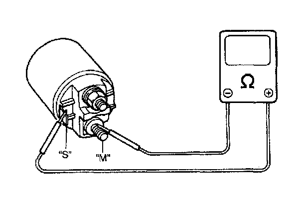 Check for continuity across magnetic switch 'S' terminal and 'M' terminal. If no continuity exists, coil is open and should be replaced.