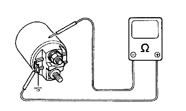Check for continuity across magnetic switch 'S' terminal and coil case. If no continuity exists, coil is open and should be replaced.