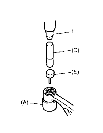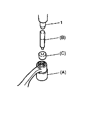 5. Remove front bushing by using hydraulic press (1) and special tools, pull out bushing.