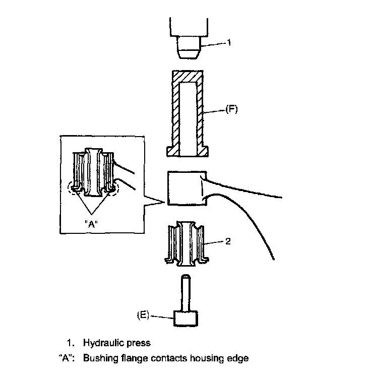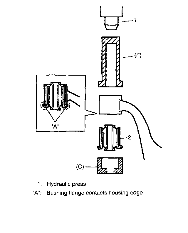 NOTE: When press-fitting bushing (2), compounding oil or soap water applied to inside of control arm housing will facilitate work.