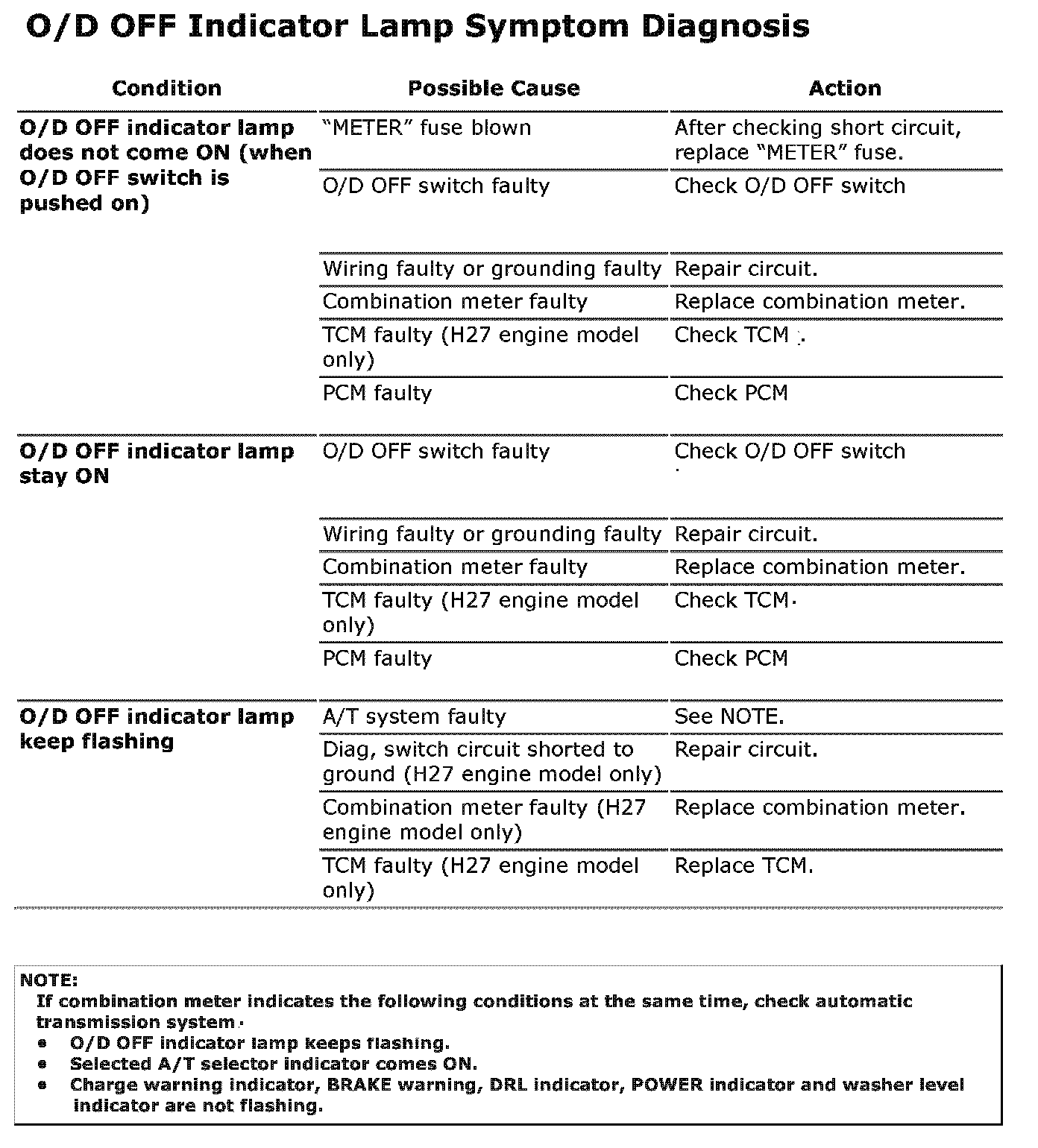 O/D OFF Indicator Lamp Symptom Diagnosis: