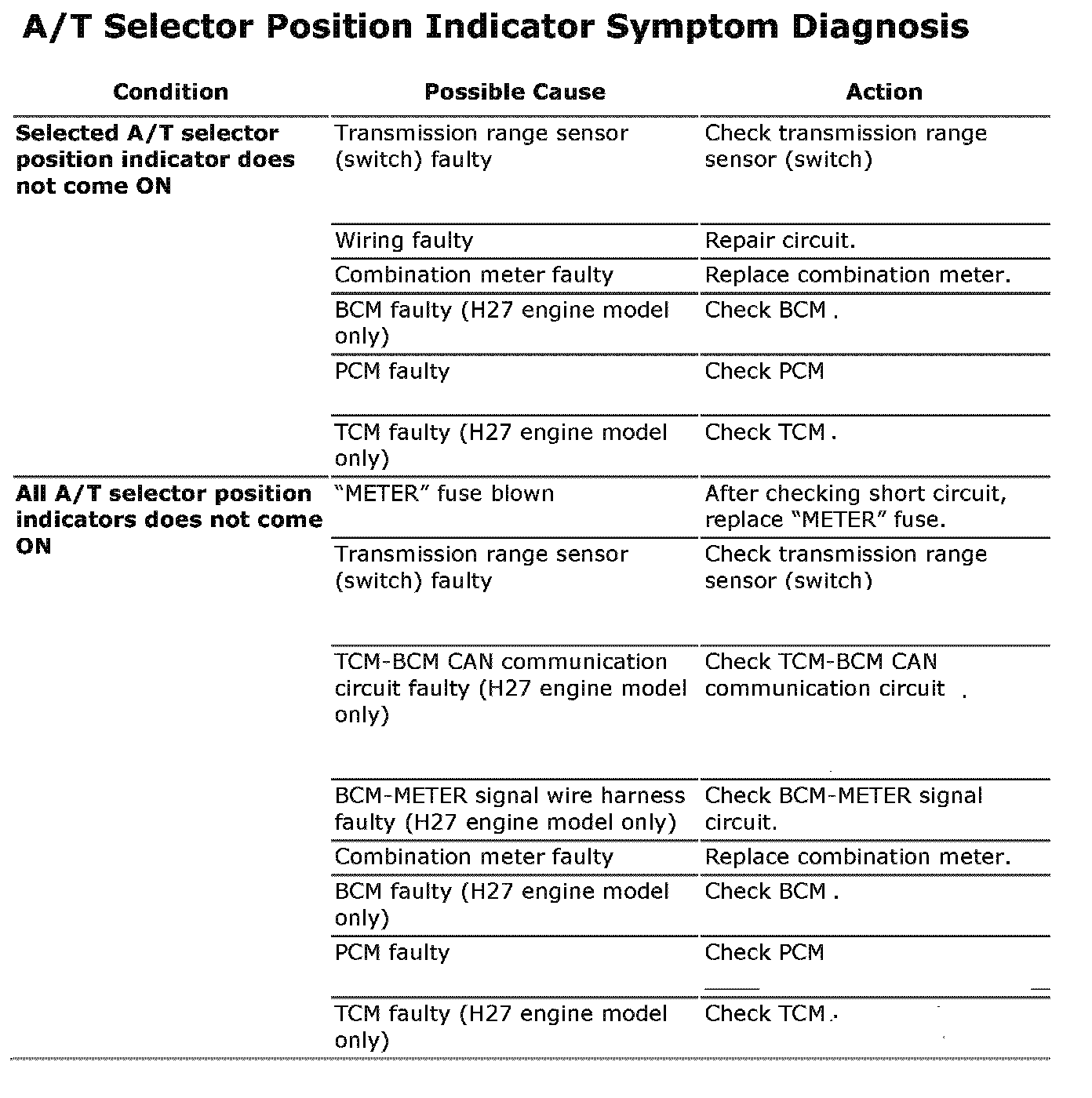 A/T Selector Position Indicator Symptom Diagnosis: