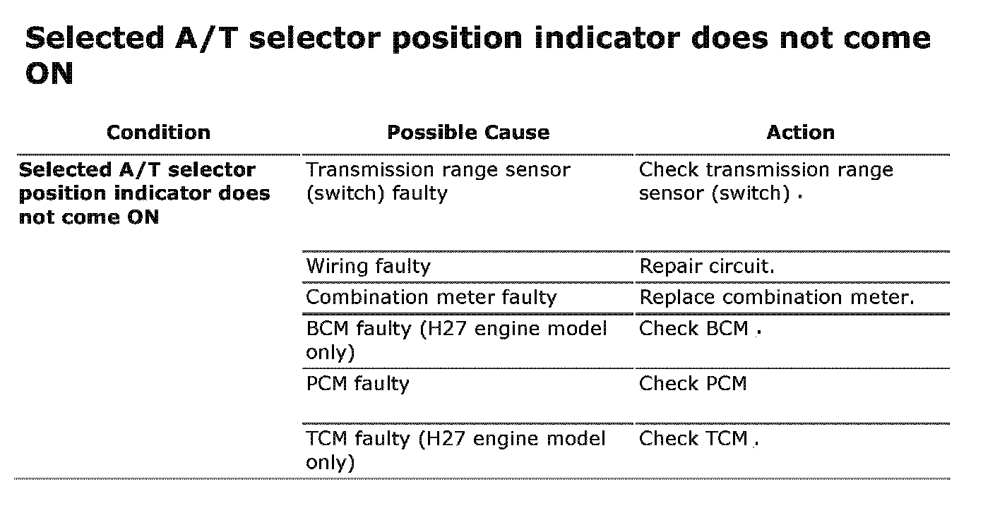 Selected A/T Selector Position Indicator Does Not Come ON