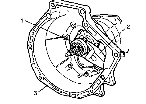 Disassembly1) Remove clutch release bearing (1), release fork (2) and clutch housing (3).