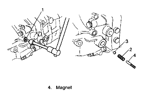 NOTE: When pulling gear shaft, hold locating roller No. 1 (1) with magnet (4) to prevent it from failing.