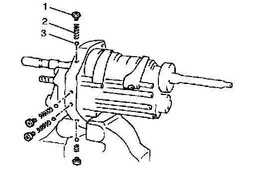 13) Remove locating screws (1), locating springs (2) and locating ball (3) as shown in figure.