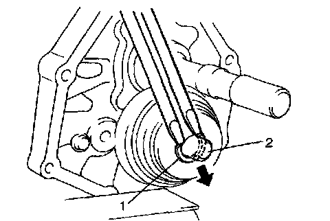 5) Remove gear shift shaft inner bolt (1) / plug (2).