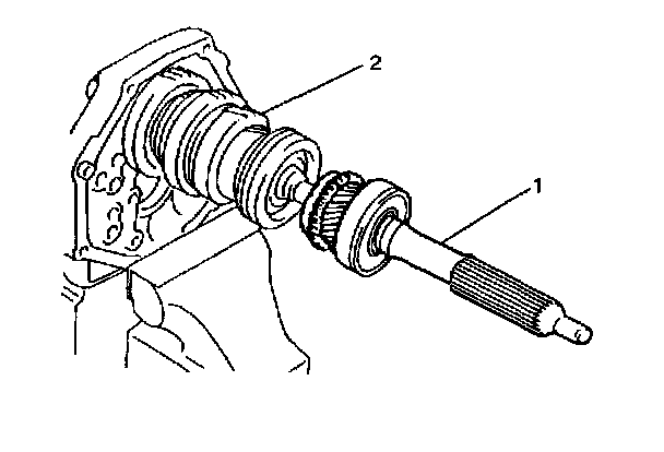 39) Remove input shaft assembly (1) with synchronizer ring from main shaft assembly (2).