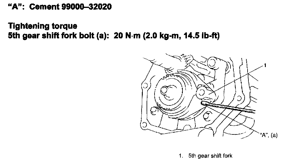 44) Apply cement "A" to inner gear shift shaft bolt / plug and tighten them to specification.