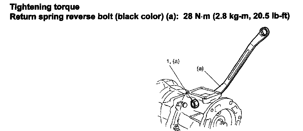 45) Tighten return spring low bolt and return spring reverse bolt (black color) (1).