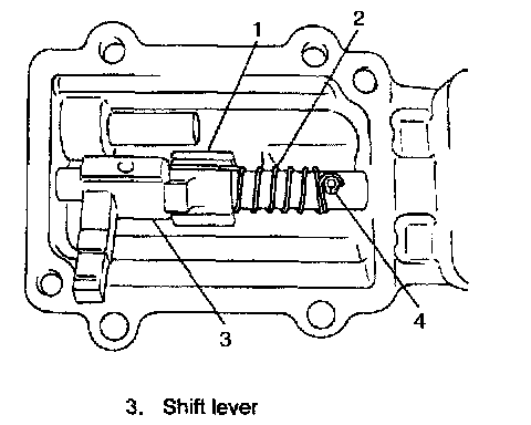 2) Insert shift shaft (1) as shown while making sure that inner parts are in proper direction.