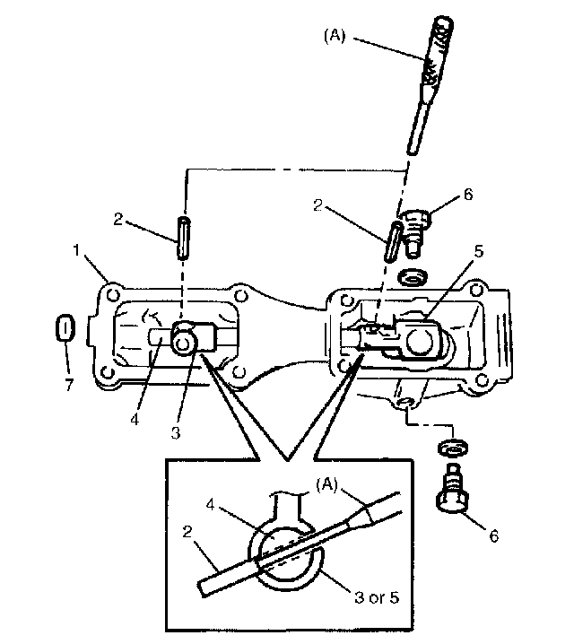 3) Drive in spring pins (2) for gear shift lever (5) and shift arm (7).