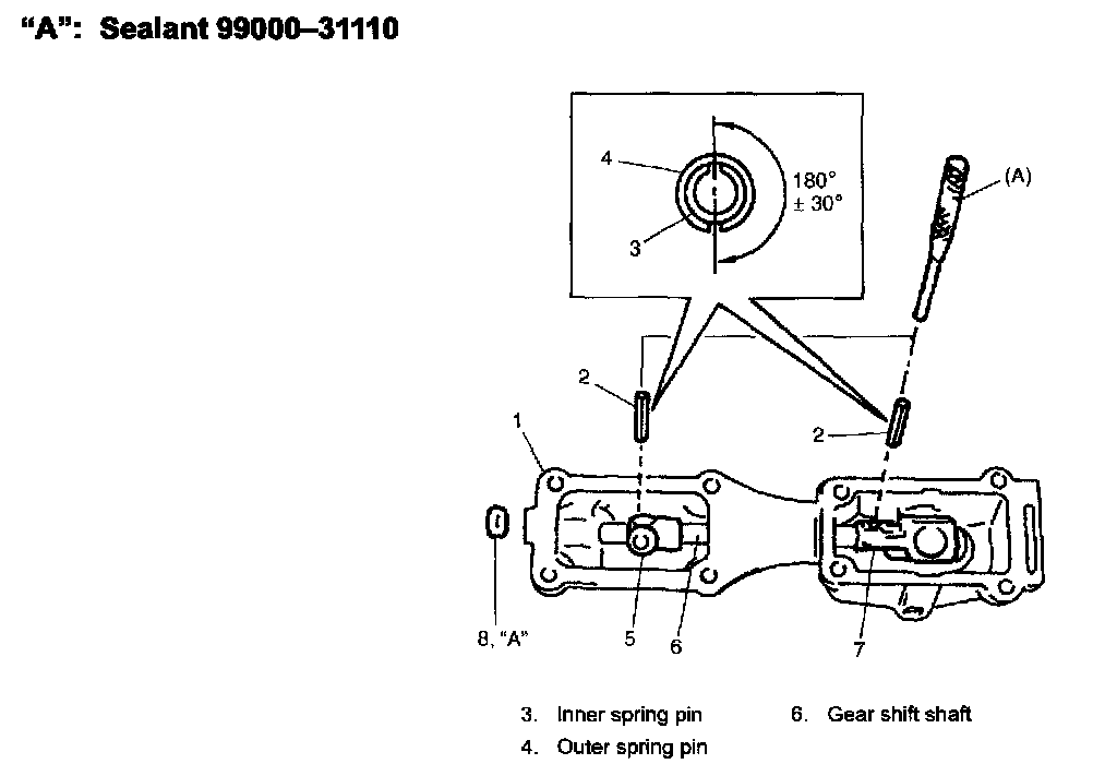 4) Likewise, drive spring pin (2) into gear shift lever (3) as far as the position shown in figure.