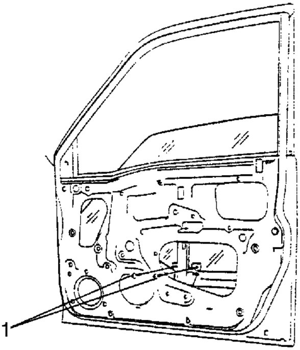 6. Remove door inside pull handle bracket (1).