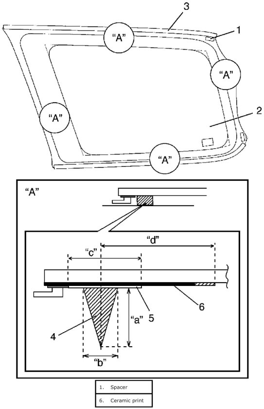 Adhesive amount specifications (quarter window)