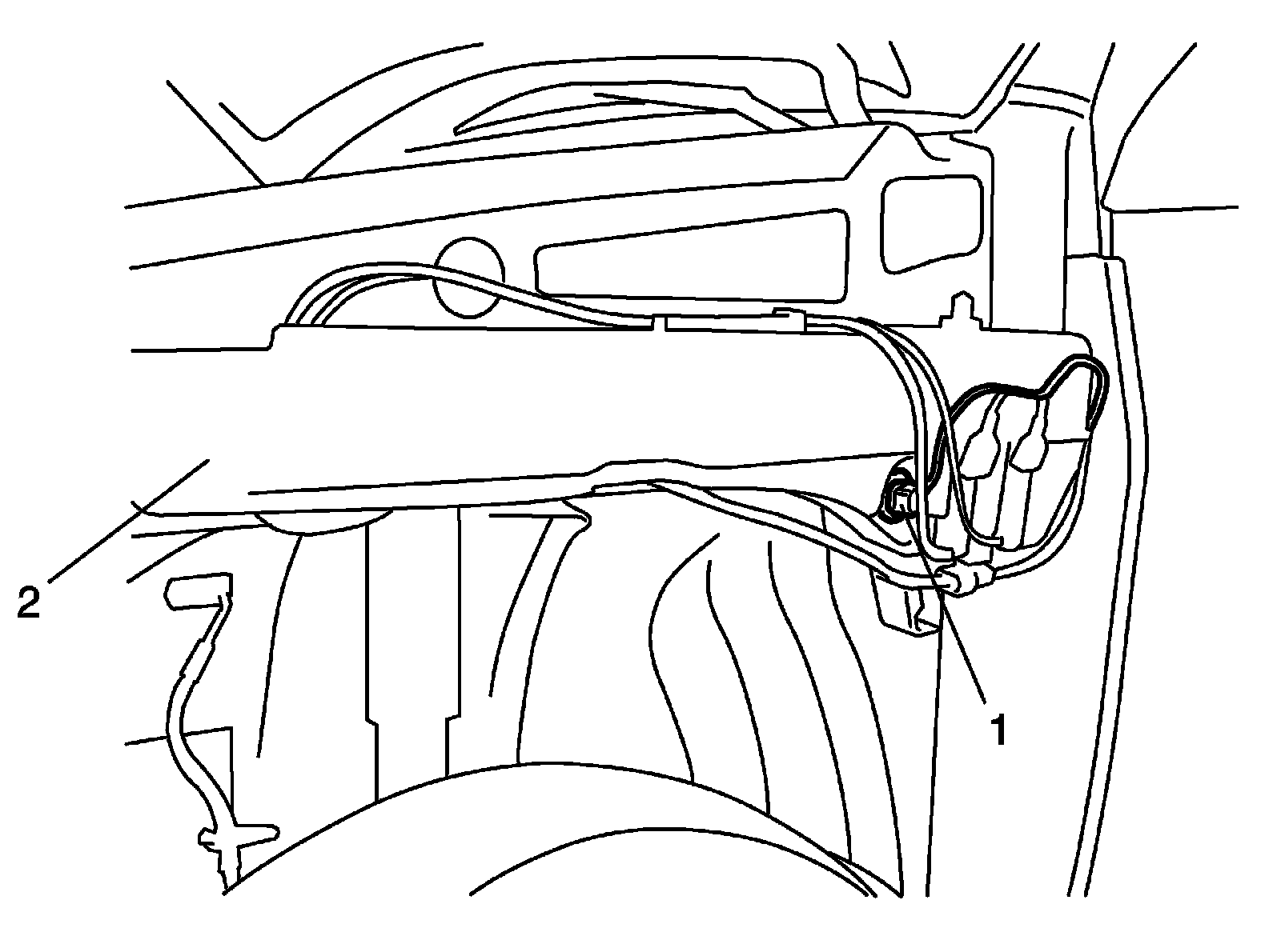 2. Remove windshield washer level switch (1) from windshield washer tank (2).