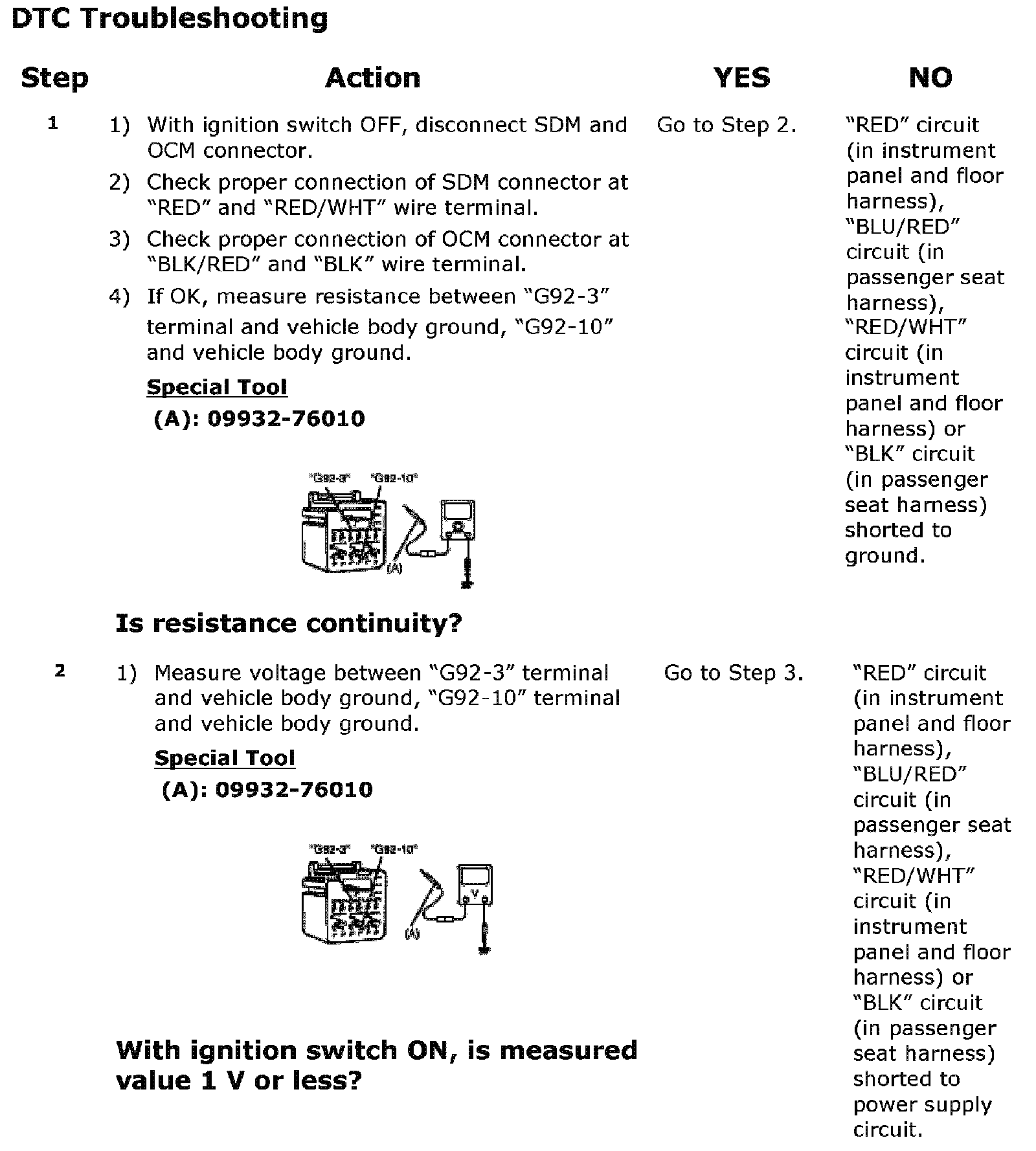 - If there is open circuit in the air bag wire harness, connector or terminal is found damaged, replace the wire harness, connector and terminal as an assembly.