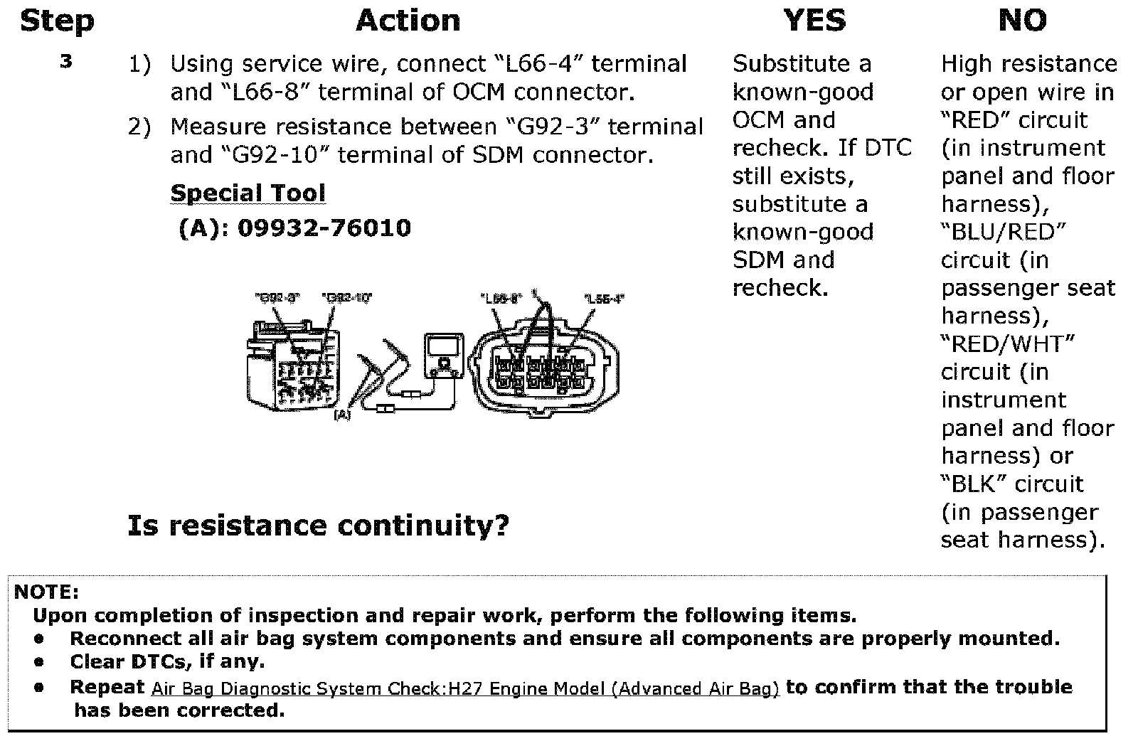 - When measurement of resistance or voltage is required in this flow, use a tester along with a correct terminal adapter from special tool (Connector test adapter kit).