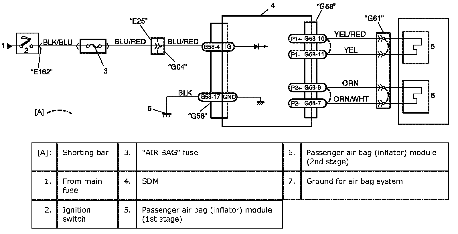 Step 2: Check passenger air bag (inflator) module (1st stage) initiator circuit.